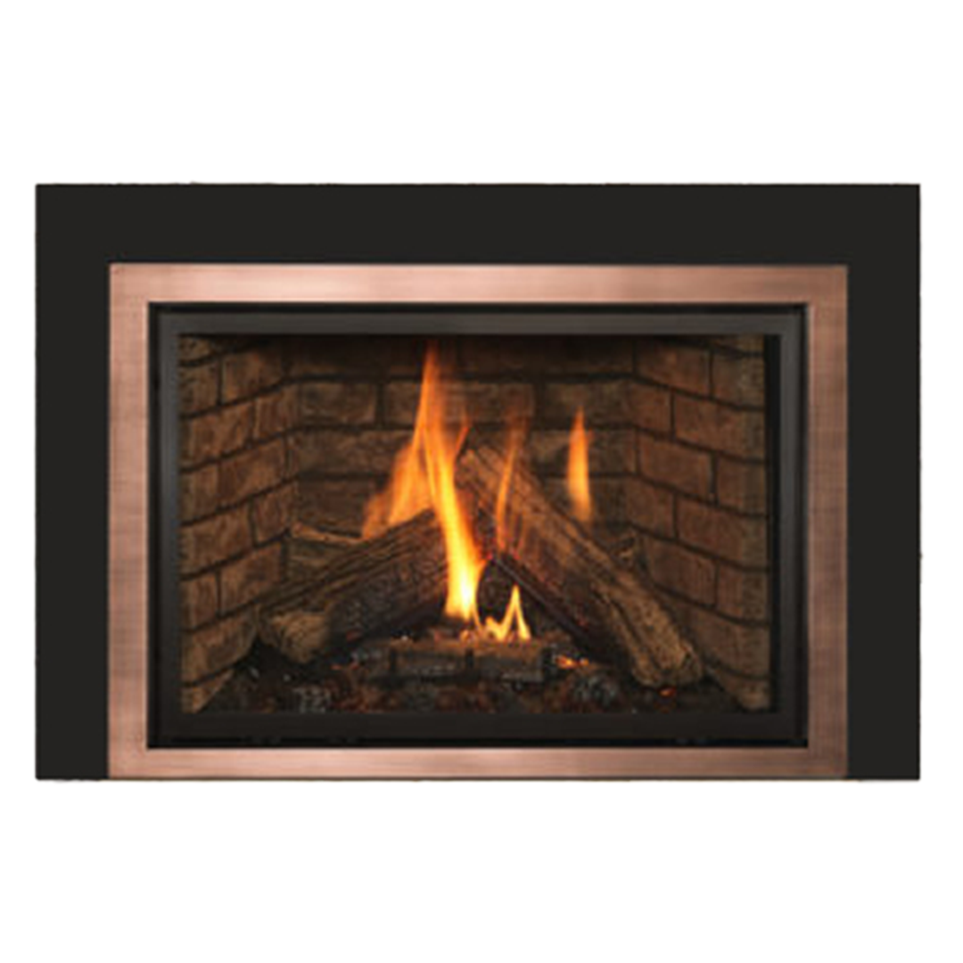 The Kozy Heat Nordik gas insert comes standard with Electronic Ignition Pilot System, ceramic glass, fan kit, standard ember light kit, and top light kit.